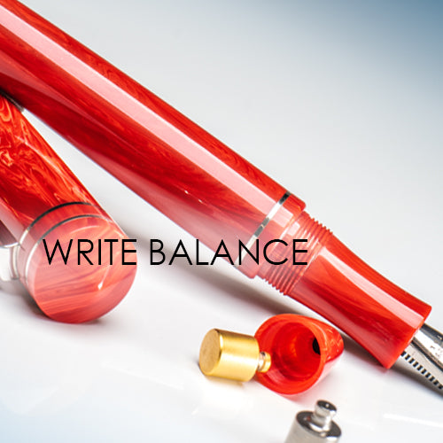 The Delta DV Write Balance luxury fountain pen is specially designed to offer optimal balance for the user that reduces fatigue and provides a more comfortable writing experience. The Write Balance pen features a removable two-gram weight, which can be added or removed depending on personal preference. With the weight inserted into the cone, the fountain pen’s balance is shifted toward the back end, meaning that the user’s hand is more involved in the writing. This top weighted center of gravity is often preferred by calligraphers. With the weight removed from the pen, the balance is weighted towards the nib. This is typically the most comfortable balance for every-day use.
